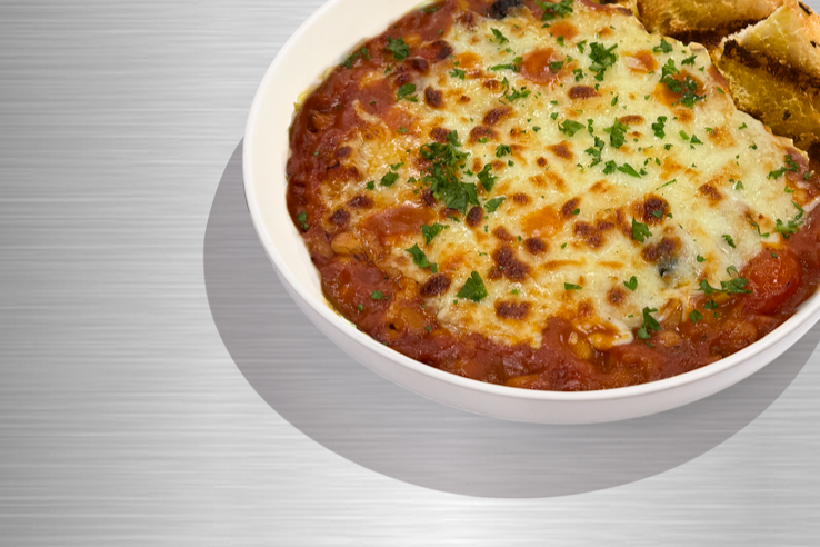 Rich and warm this dip features tomatoes, garlic, spinach, herbs & spices envelope soft creamy white beans crowned with a blend of parmesan & mozzarella